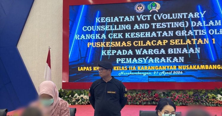 CILACAP, INFO_PAS – Dalam upaya meningkatkan derajat kesehatan warga binaan, Lapas Khusus Kelas IIA Karanganyar Nusakambangan melaksanakan kegiatan Voluntary Counseling and Testing (VCT) Mobile yang dirangkaikan dengan Cek Kesehatan Gratis (CKG) pada Selasa, 21 April 2026 mulai pukul 08.00 WIB hingga selesai. Kegiatan ini dilaksanakan di Aula Chandra Nawasena Lapas Karanganyar Nusakambangan.